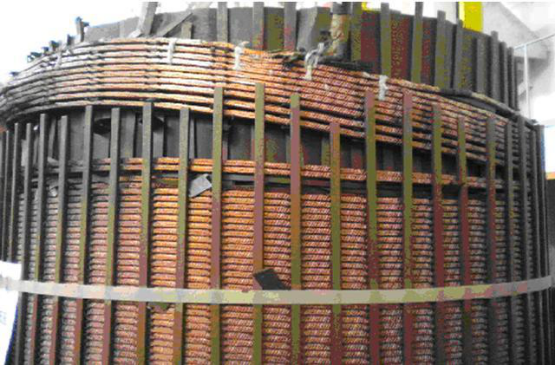 變壓器低壓側(cè)發(fā)生短路時(shí),所承受的短路電流******,而低壓線圈的結(jié)構(gòu)一般采用圓筒式或螺旋式多股導(dǎo)線并繞,為了提高線圈的動(dòng)穩(wěn)定能力,線圈內(nèi)多采用絕緣紙筒支撐,但有些廠家僅考慮變壓器的散熱能力,對(duì)于其動(dòng)穩(wěn)定,則只要計(jì)算值能夠滿足要求,便將支撐取消,于是當(dāng)變壓器遭受出口短路時(shí),由于動(dòng)穩(wěn)定能力不足,而使線圈變形甚至損壞。